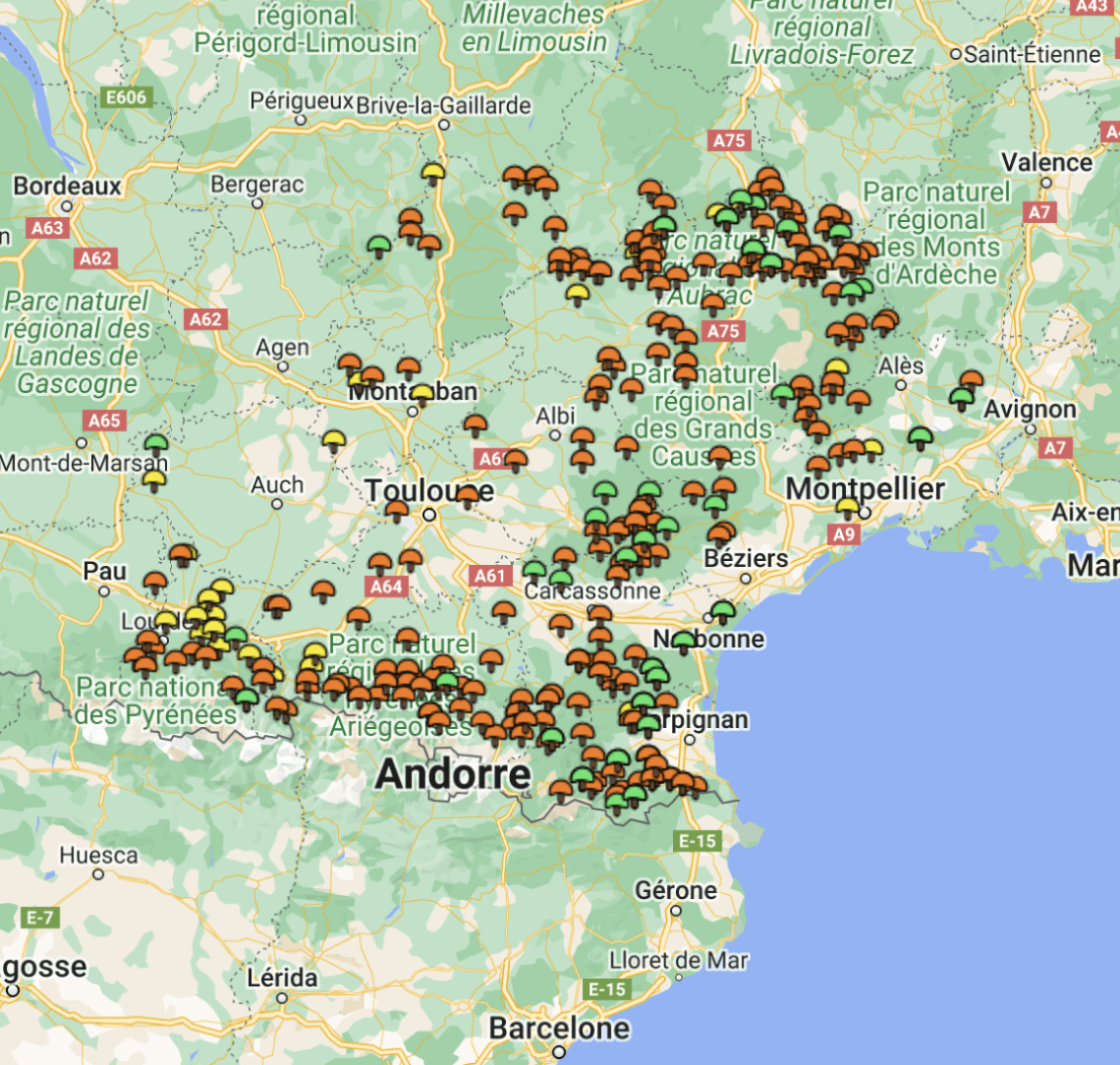 Découvrez les coins à cèpes d’Occitanie, les zones les plus propices à la pousse des cèpes. Nous avons répertorié 38 zones à cèpes des pins, 225 zones à cèpes de Bordeaux et 38 zones à cèpes d’été.