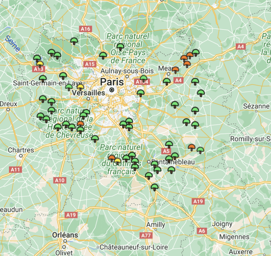 Carte girolles Île-de-France